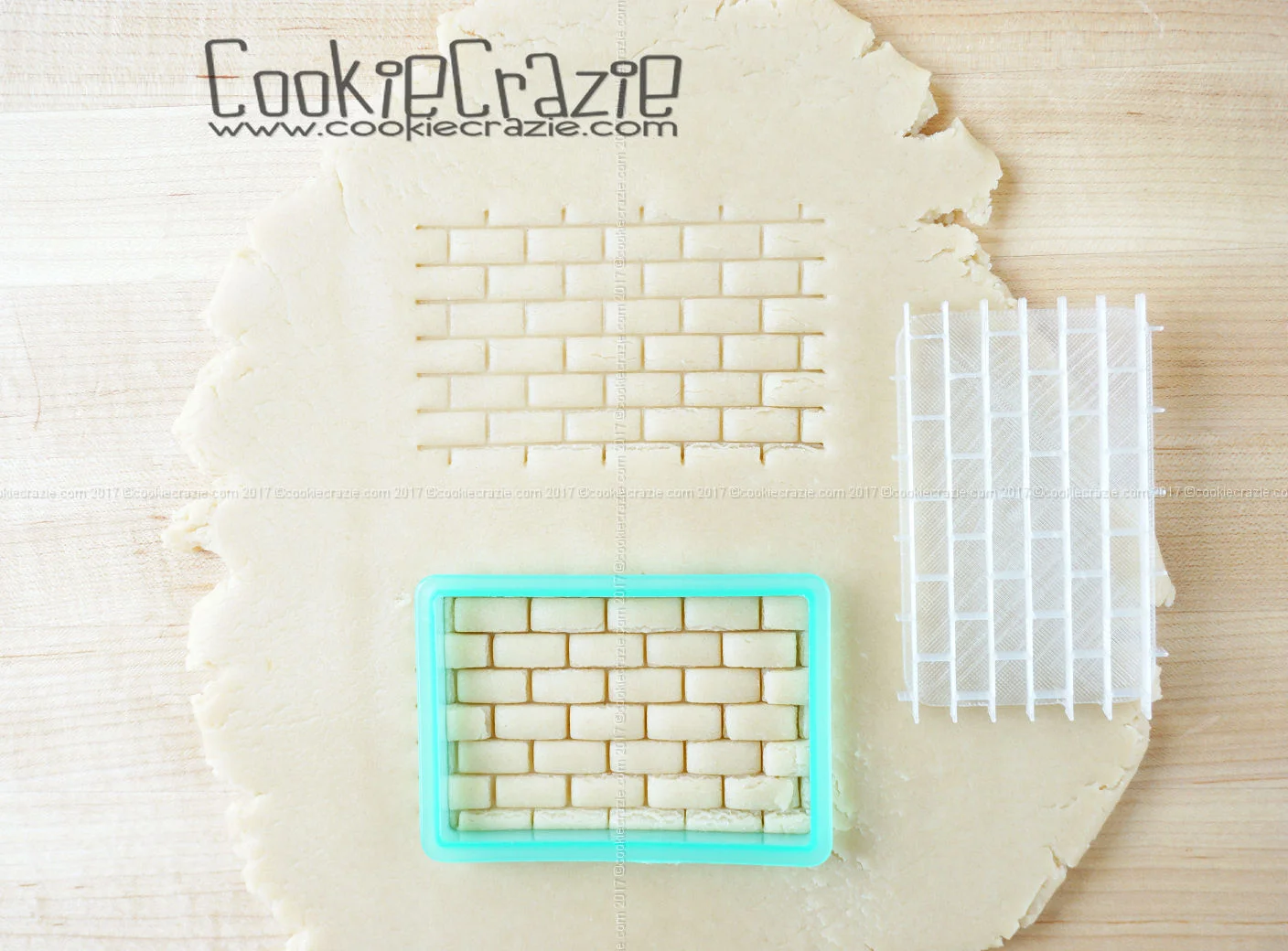 Using a brick embosser, push it face down into the sugar cookie dough and roll over it with the rolling pin to make a deep impression in the dough. Then use a cutter-shape-of-your-choice, cut out the dough to capture that beautiful brick impression.