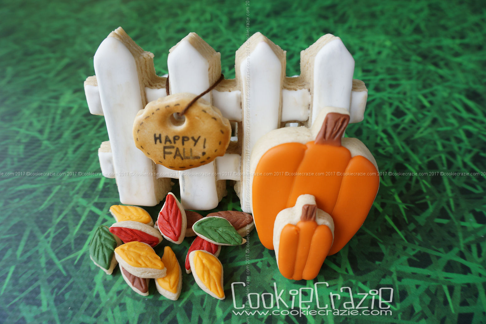 There's something so quaint and rustic about cute little picket fences. And I love them in an autumn scene. So when I found this adorable fence cookie cutter, I was anxious to create some fall cookie collections with it. :)