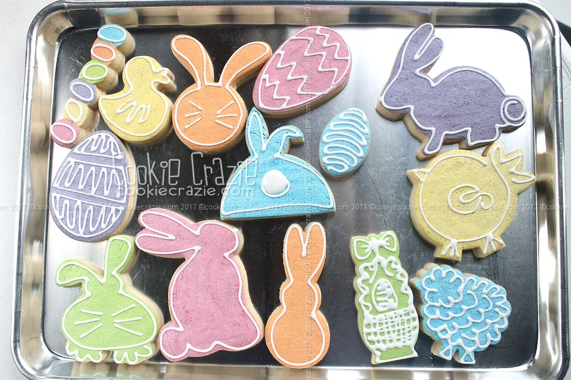 After discovering the neon sign style for cookies, I wanted to transfer that simple, clean look into a pastel spring color setting. I tried by using a white background on the cookies, but it was not the look I was going for. However, when I painted the cookies with bright spring-y colors and used white glaze for the silhouette and detail lines, it matched what I was envisioning.