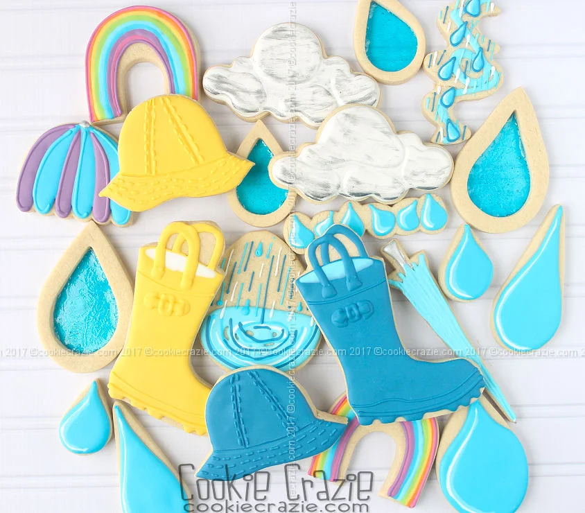I love a rainy day.......it's a snuggly, read-a-book kind-of-day. And the sound of rain falling is so calming and soothing. It seems perfect to celebrate all those spring showers in a cookie set.