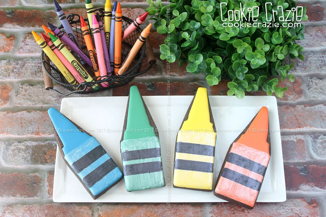 While planning this year's back-to-school cookies I kept seeing photos of lined up crayons and their beautiful colors. It inspired me to create my own line-up of beautiful colors depicting just the ends (or nubs....as I lovely refer to them).