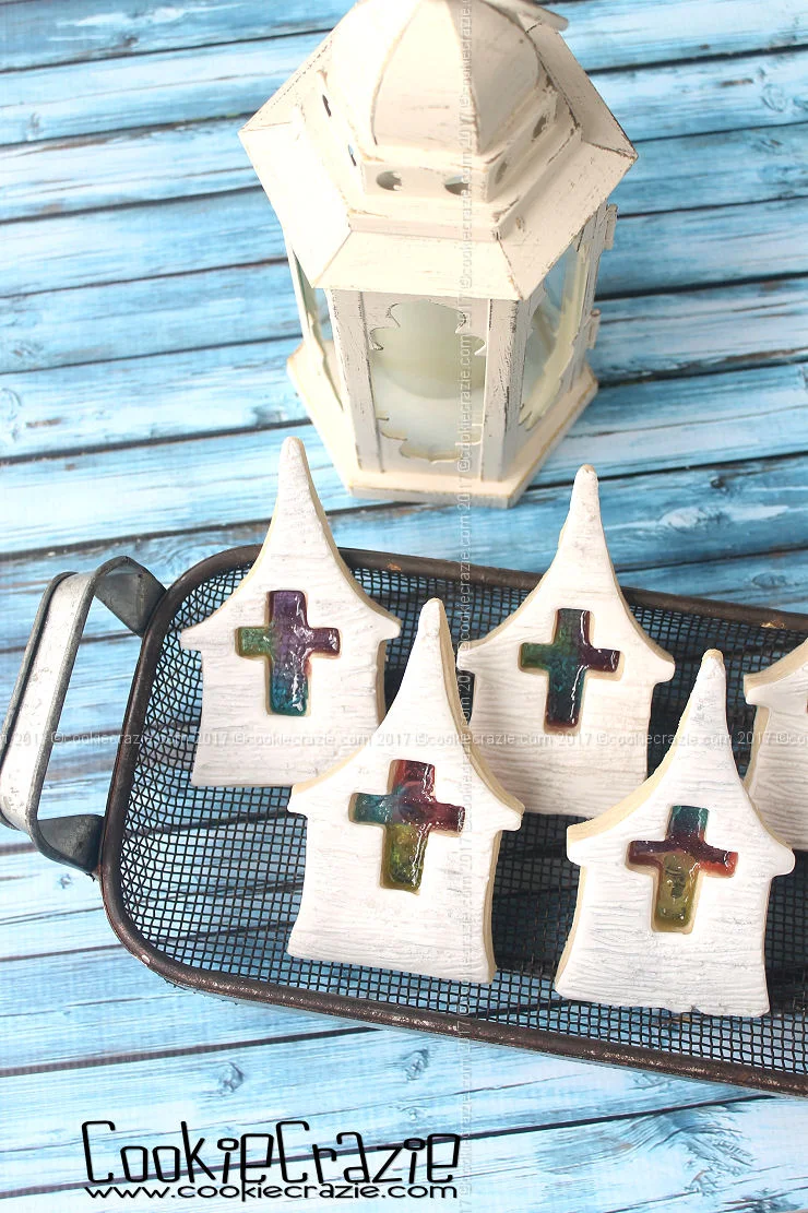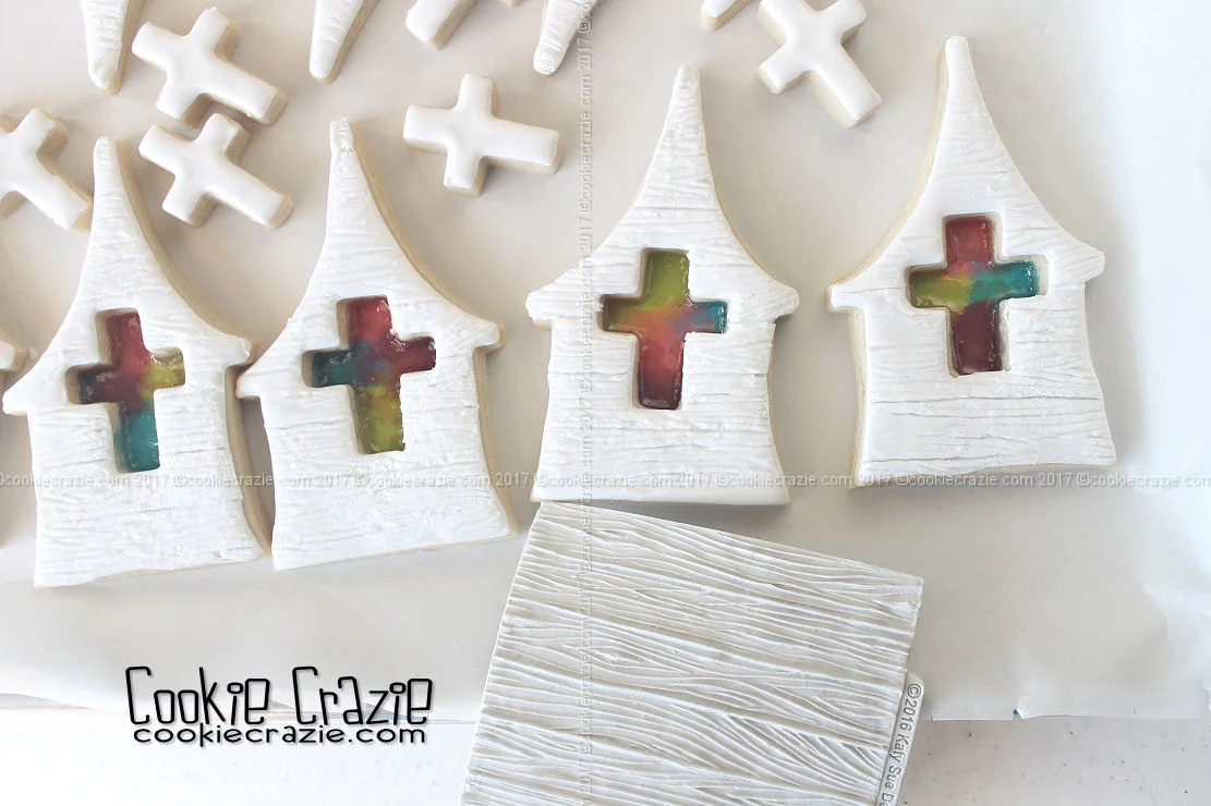 After making the Stained Glass Raindrop Cookies a while back, I immediately thought to use Jolly Rancher hard candies for some stained glass windows in my little church cookies. :)