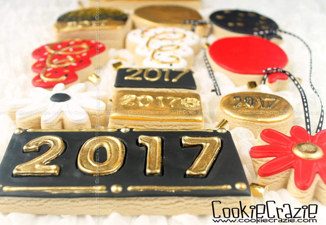 2018 NY Pedestal Cake Decorated Cookie YouTube video HERE       New Years Eve Confetti Decorated Sugar Cookie YouTube video HERE